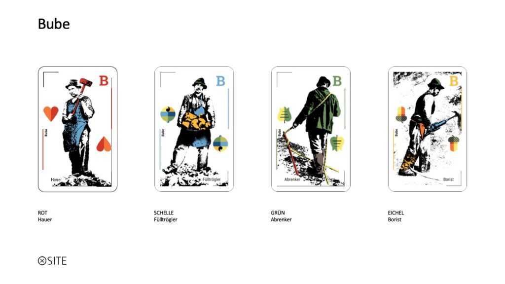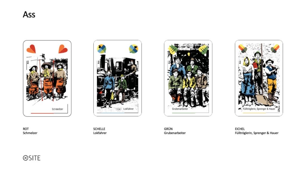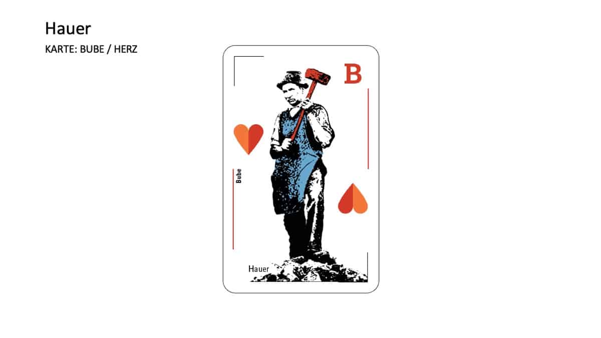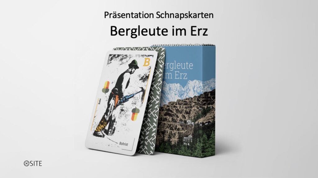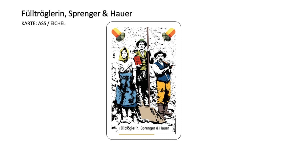 Das Kartenset BERGLEUTE IM ERZ beleuchtet heute nur noch wenig bekannte Metiers wie Hutmann, Abrenker, Schmelzer, Hauer oder Füller, welche Anfang des 20. Jahrhunderts die Arbeitswelt am Erzberg prägten, und bietet spielerisch einen Einblick in ein vergangenes Kapitel Eisenerzer Industriegeschichte.