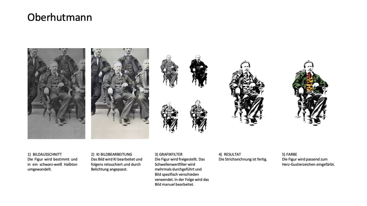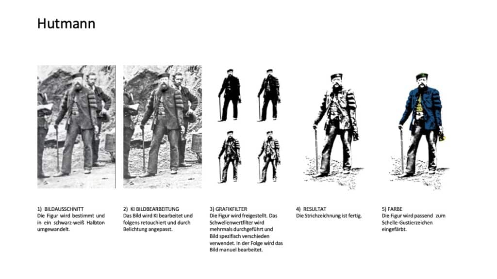 Klaus Kempenaars hat die Genese der Figuren bzw. der Spielkarten auf Basis der großteils sehr schlecht aufgelösten Originalfotos anschaulich aufbereitet: