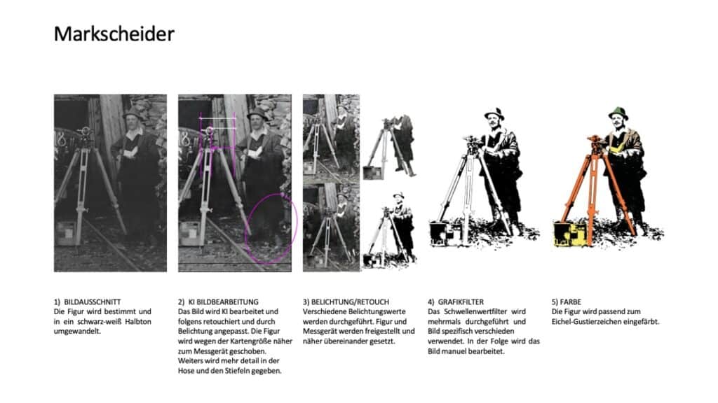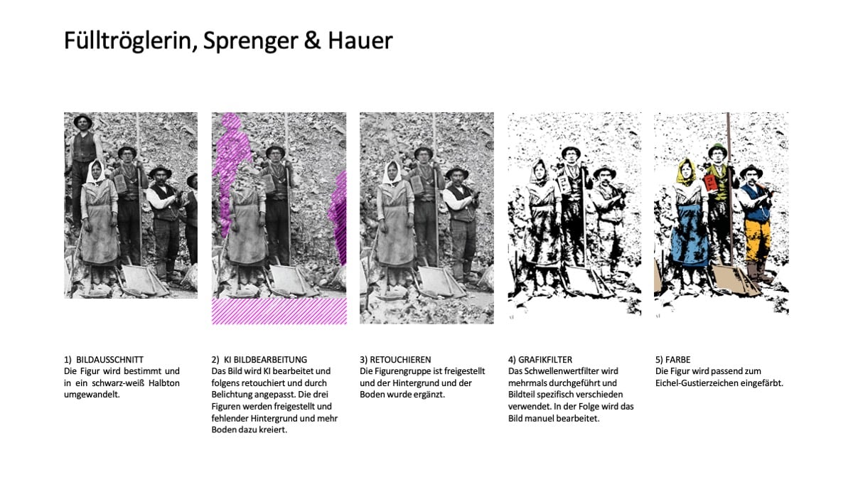 Bilder aus der Zeit um 1900 hatten Klaus Kempenaars, den in New York und Amsterdam tätigen Designer mit steirischen Wurzeln, inspiriert: Er reichte seine Idee zum Souvenir-Wettbewerb (2021) ein. Zwar gewann ein anderes Konzept (Jakob Glasner: Gold Silber Eisen), doch erschien auch dieser Entwurf derart reizvoll, dass es galt ihn ebenfalls umzusetzen!