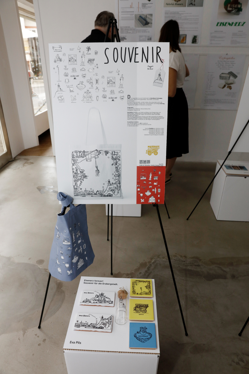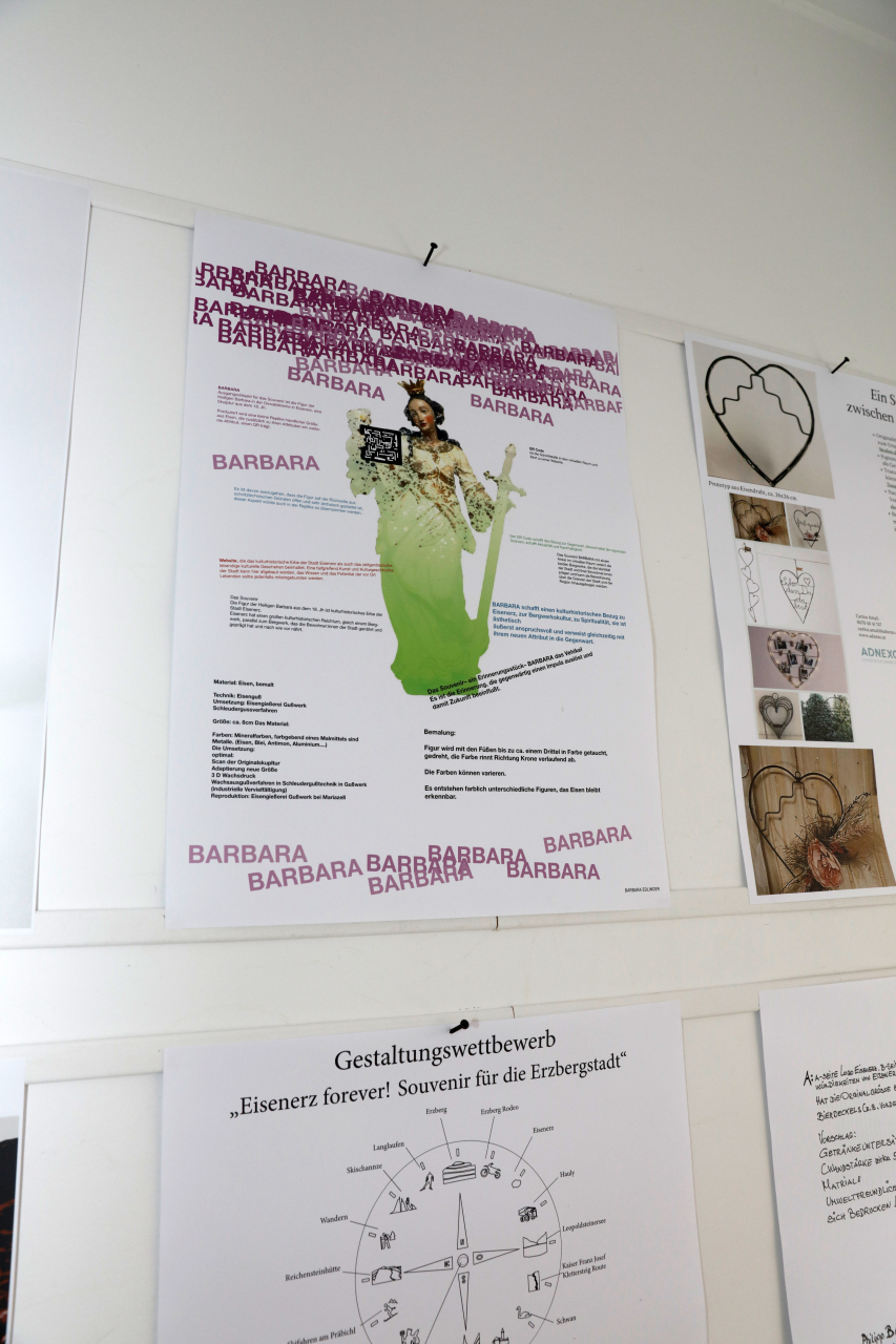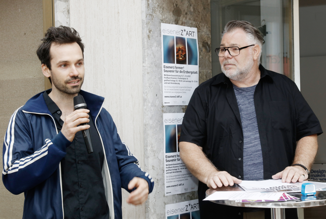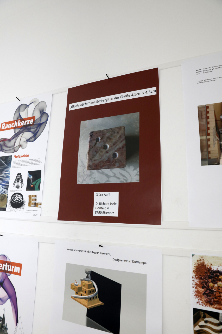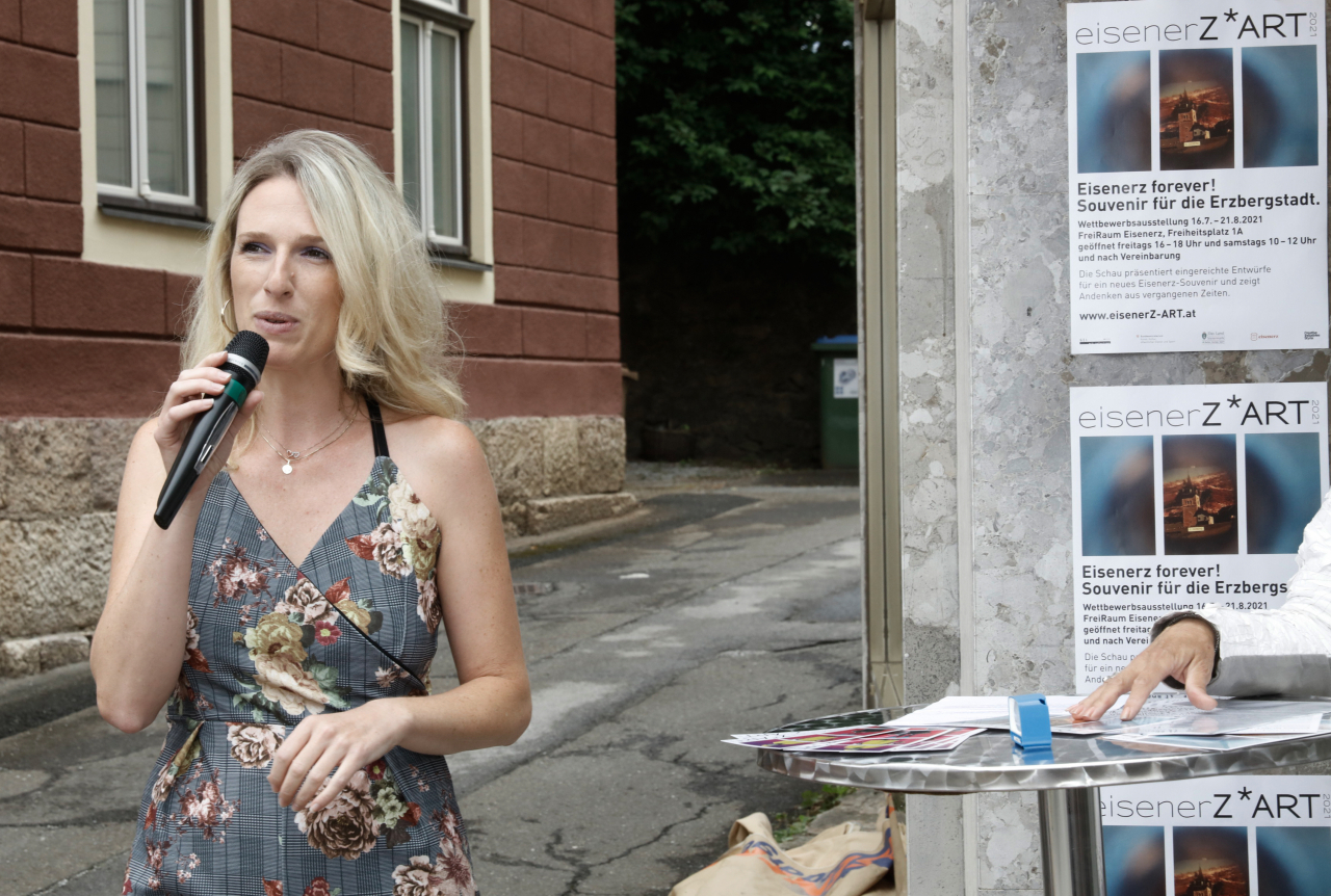 Reges Interesse weckte am Freitag, 16.07.2021, die Eröffnung der Ausstellung „Eisenerz forever! Souvenir für die Erzbergstadt“ im FreiRaum Eisenerz, bei der alle 36 eingereichten Projektideen – darunter 4 aus New York, 1 aus der Schweiz und 7 aus Eisenerz – präsentiert wurden.