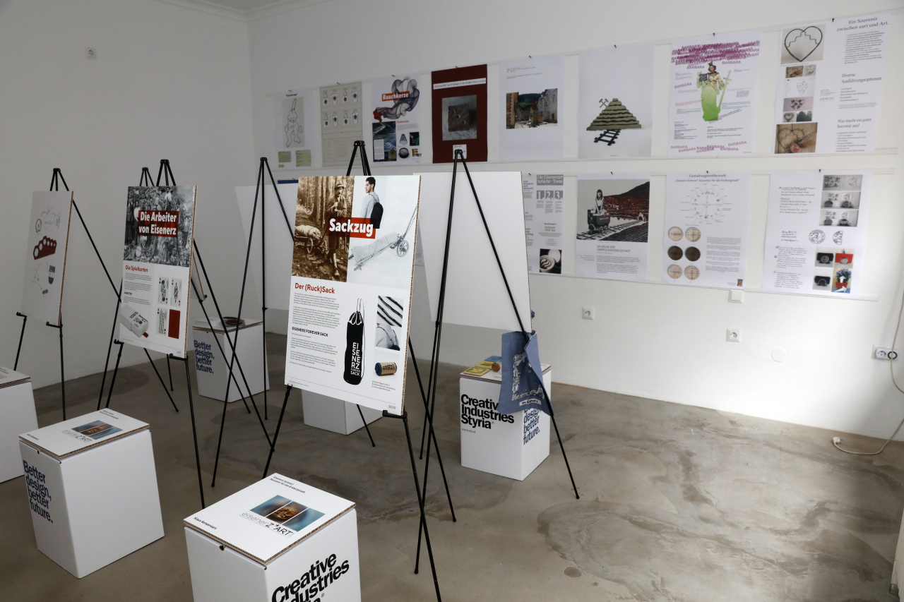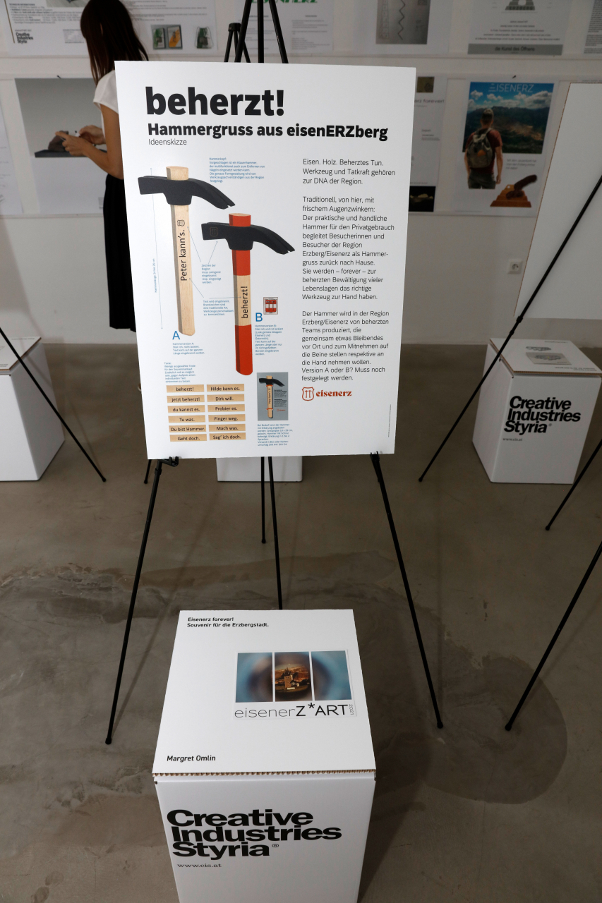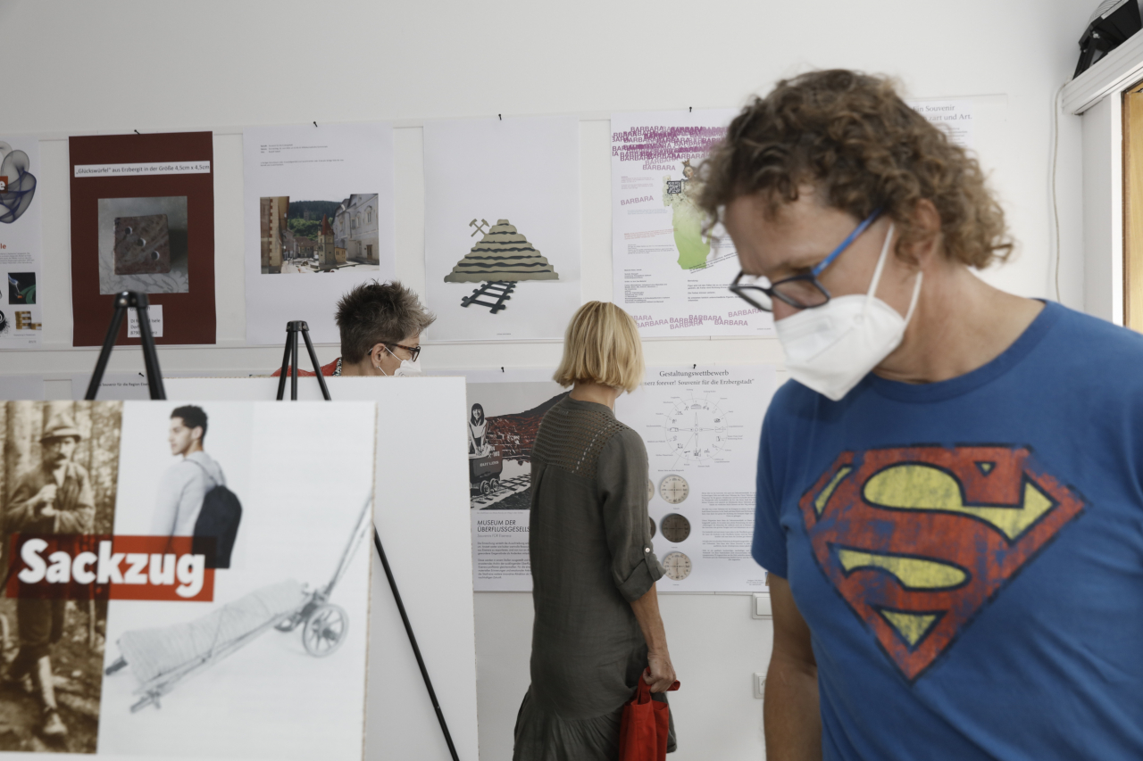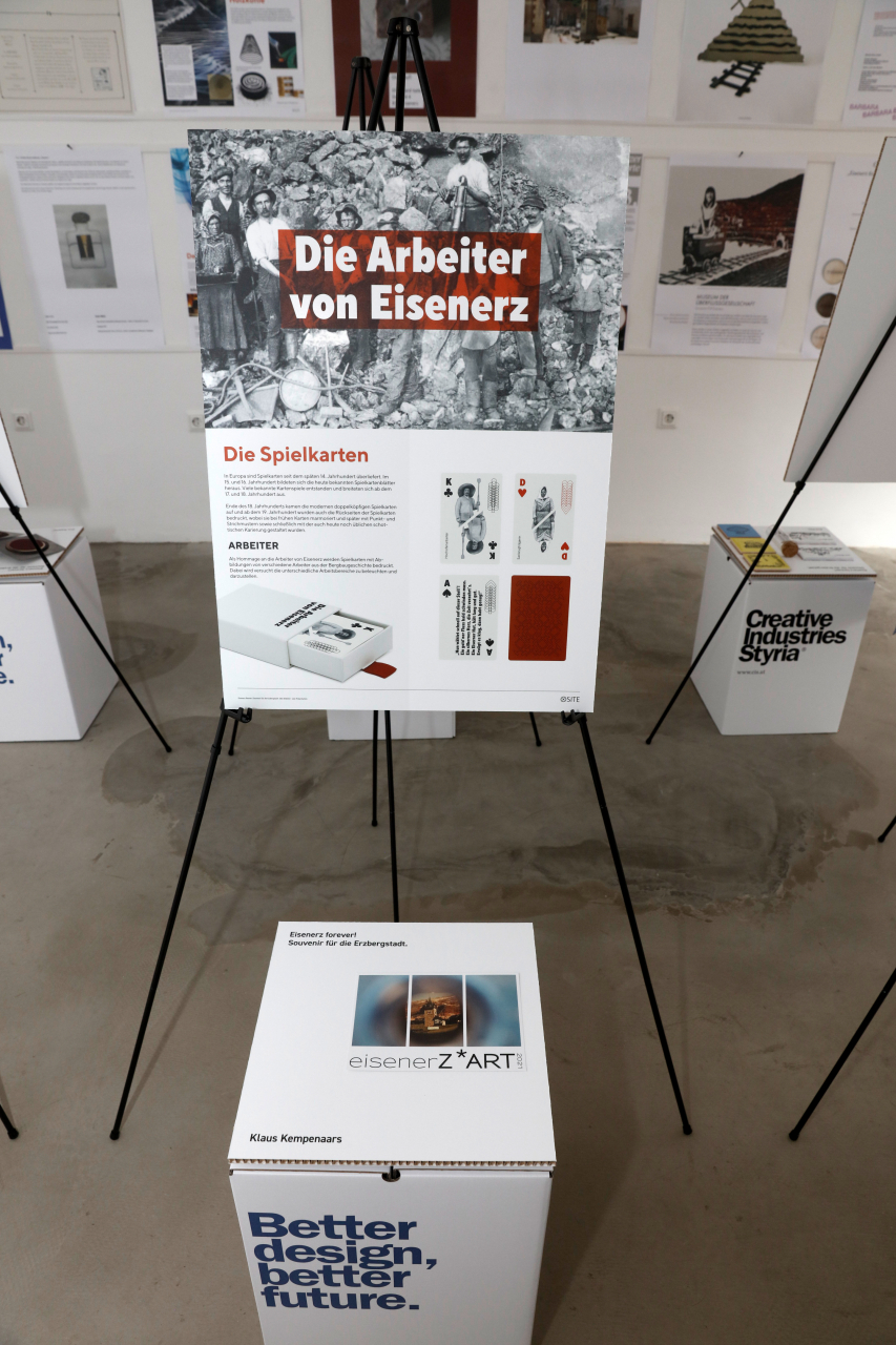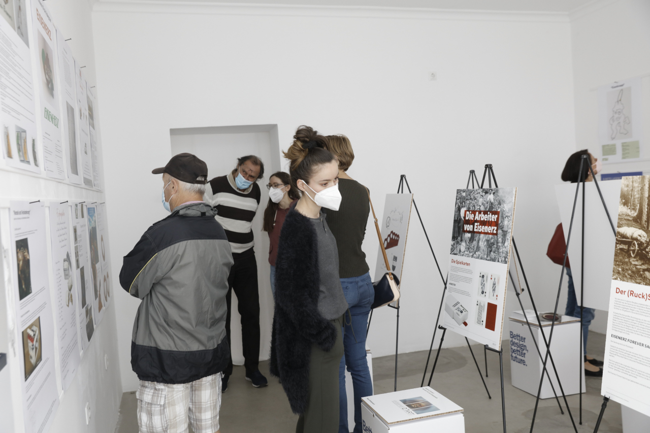Reges Interesse weckte am Freitag, 16.07.2021, die Eröffnung der Ausstellung „Eisenerz forever! Souvenir für die Erzbergstadt“ im FreiRaum Eisenerz, bei der alle 36 eingereichten Projektideen – darunter 4 aus New York, 1 aus der Schweiz und 7 aus Eisenerz – präsentiert wurden.