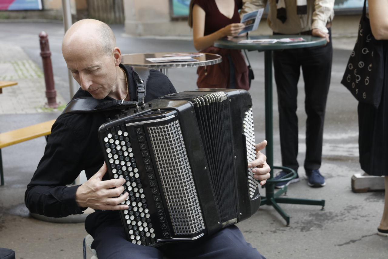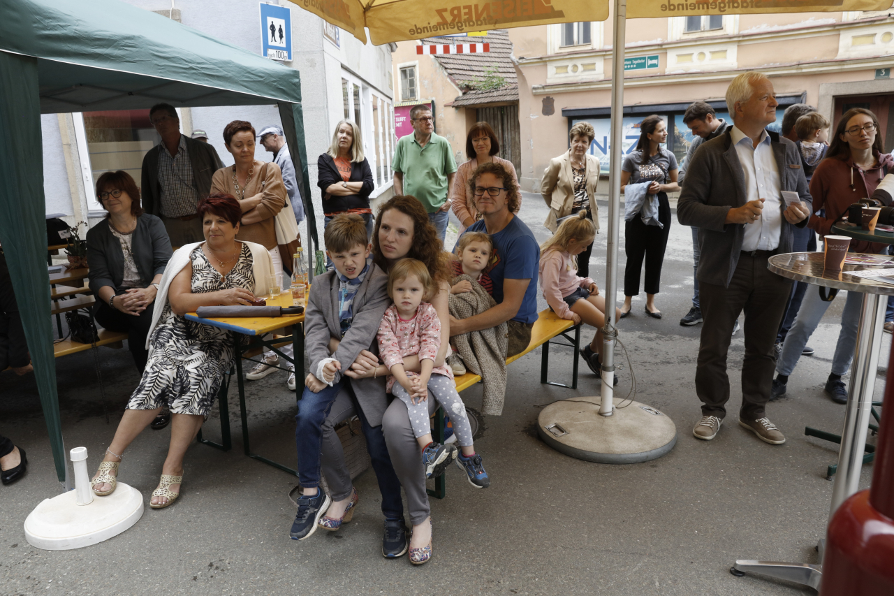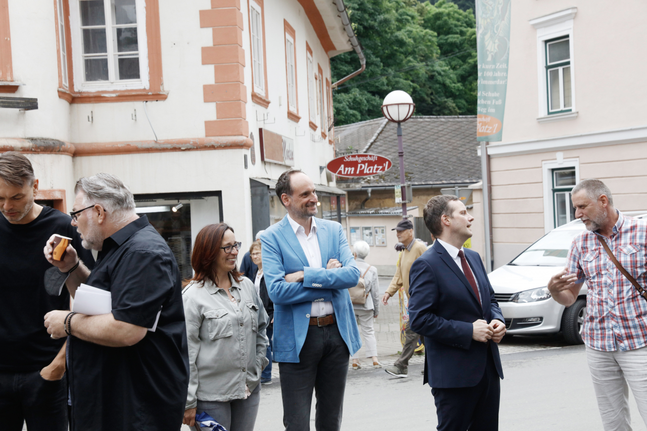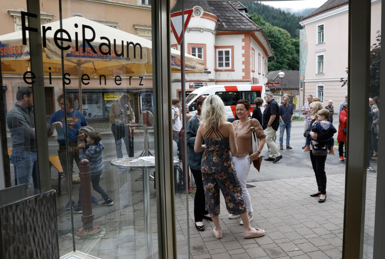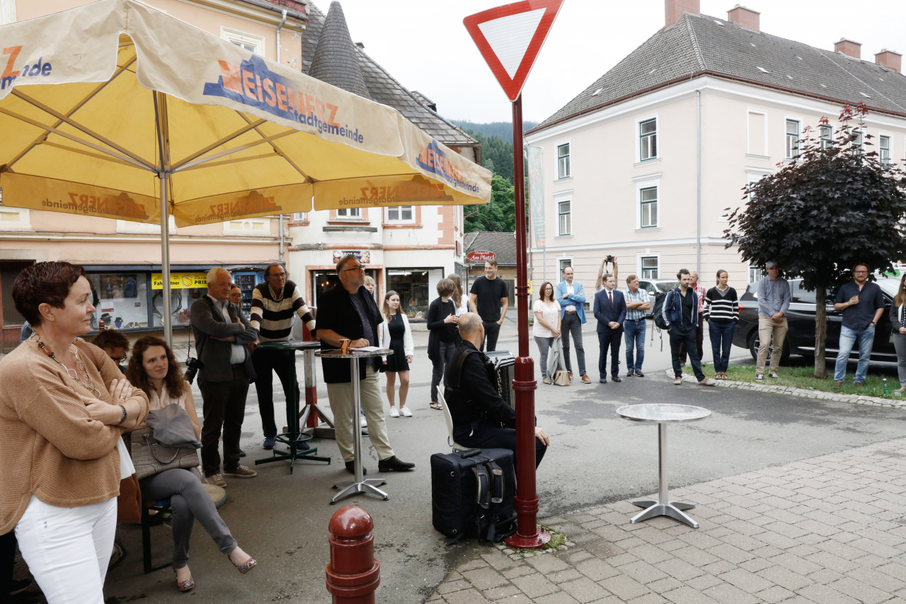 Zur Eröffnung kamen Vertreterinnen der Creative Industries Styria, der Stadtgemeinde Eisenerz, alle sieben Jurymitglieder, einzelne EinreicherInnen und zwei der Finalisten, darunter der glückliche Gewinner. Die musikalische Begleitung steuerte der ukrainische Akkordeonist Vitaliy Patsyurkovskyy mit Werken von Bach, Vivaldi und Piazzolla bei.